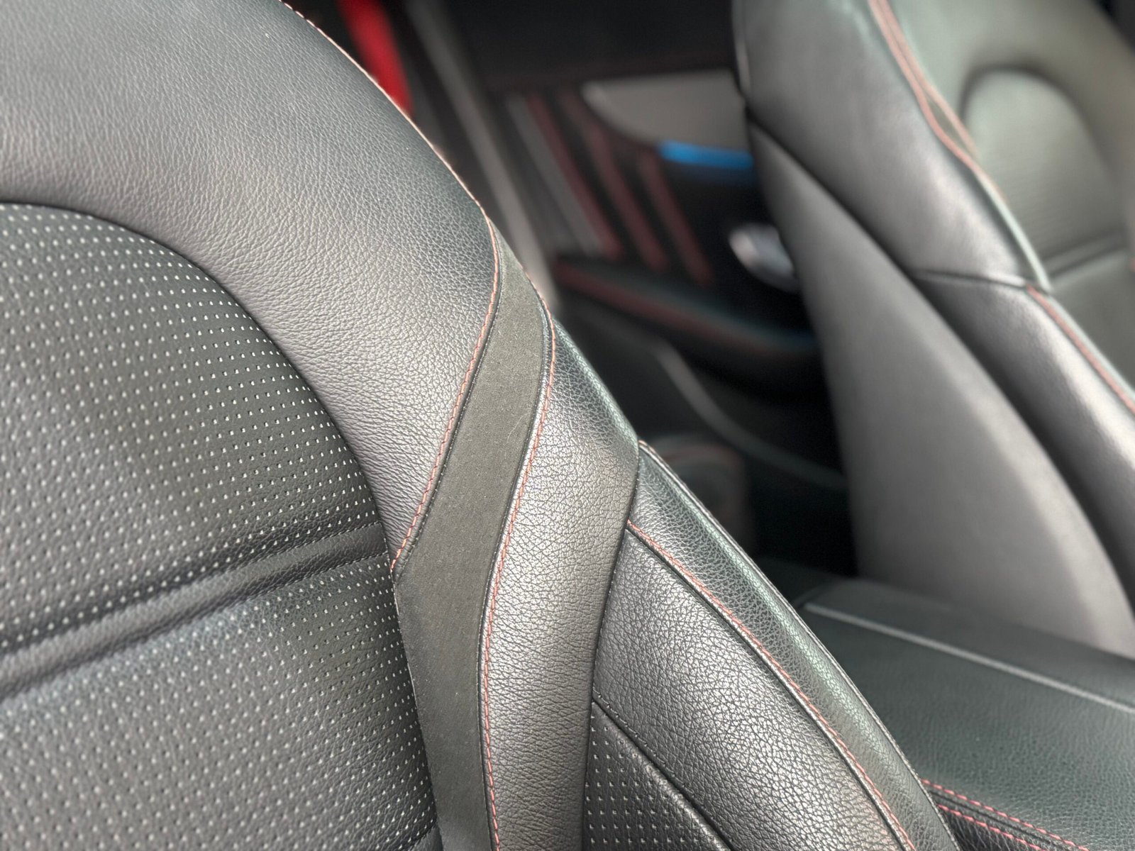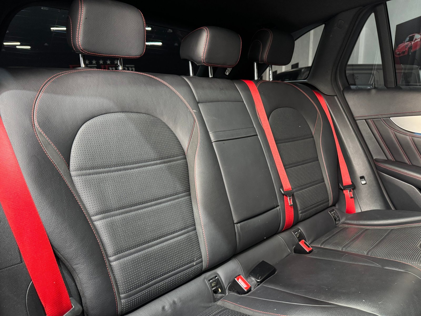 -Cinturones en rojo , costuras de asientos y tapicería en rojo