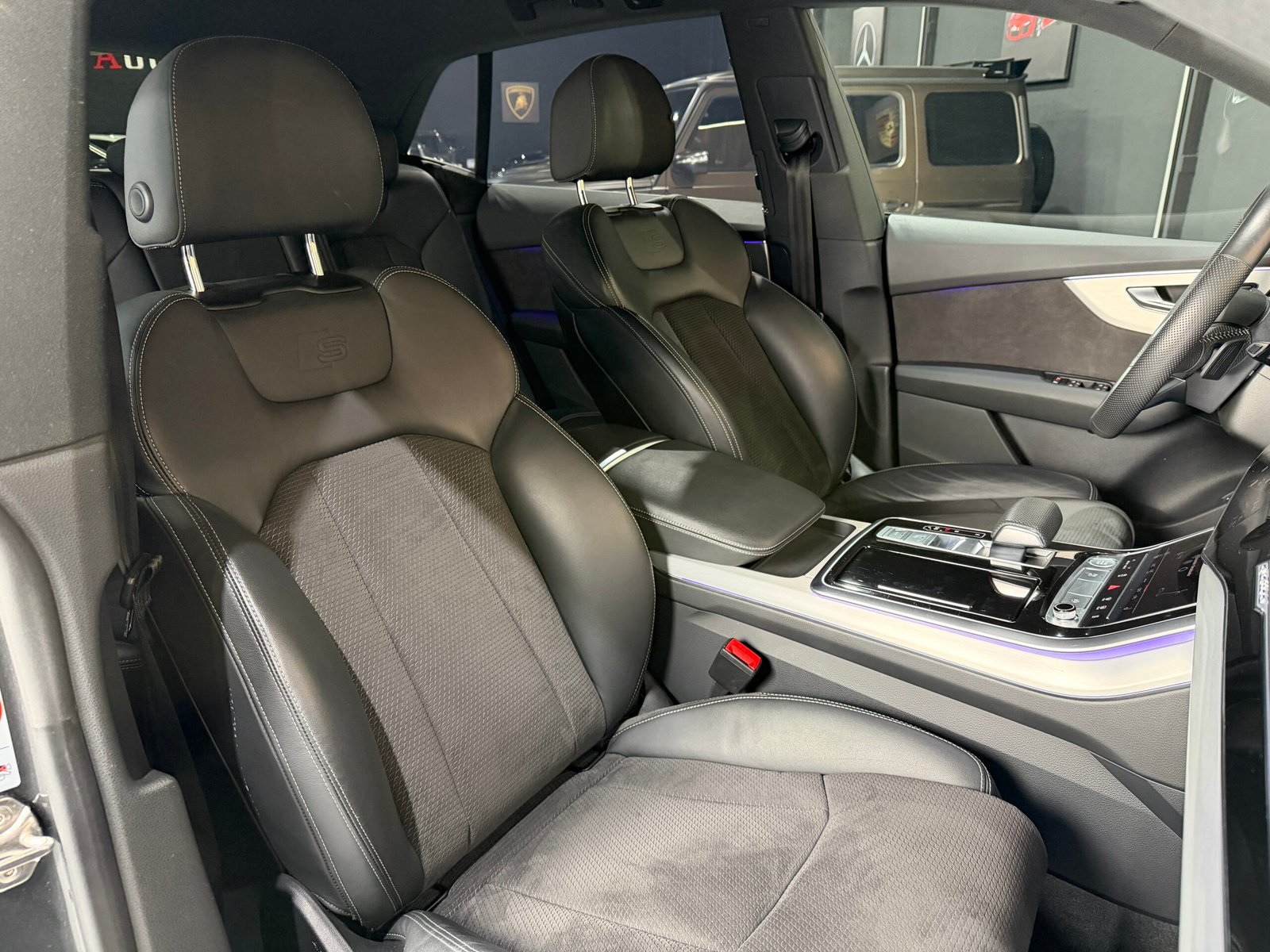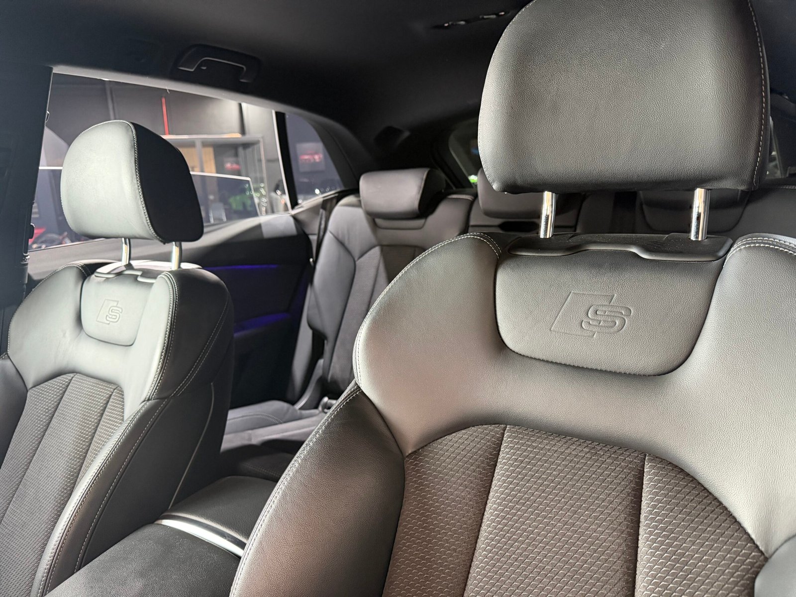 -Seats upholstered in leather with S-LINE inscription